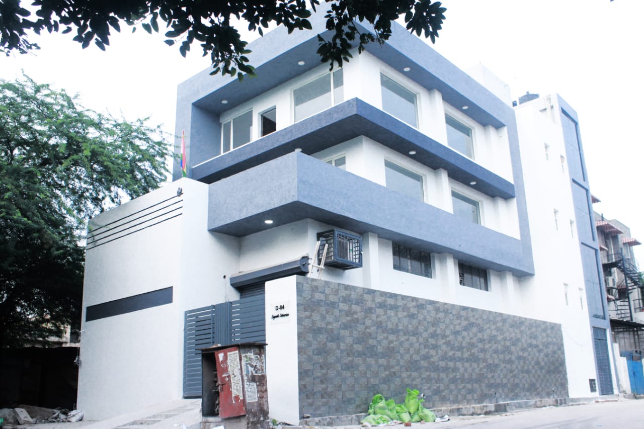 Construction of Industrial Building at E-45/3, Okhla Industrial Area Phase-2, New Delhi. It has Basement + Still Parking + 4 floors, Plaster work, Painting work, Plumbing work, electrical work, Elevation Work, Flooring Work, Boundary wall and miscellaneous work with all finishing work.